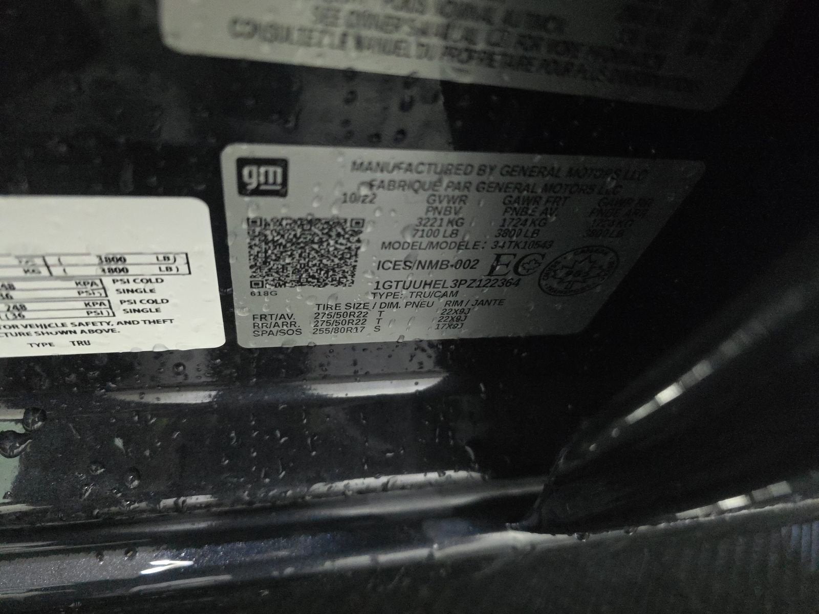 - Front Tire Size: 275/50R22SL