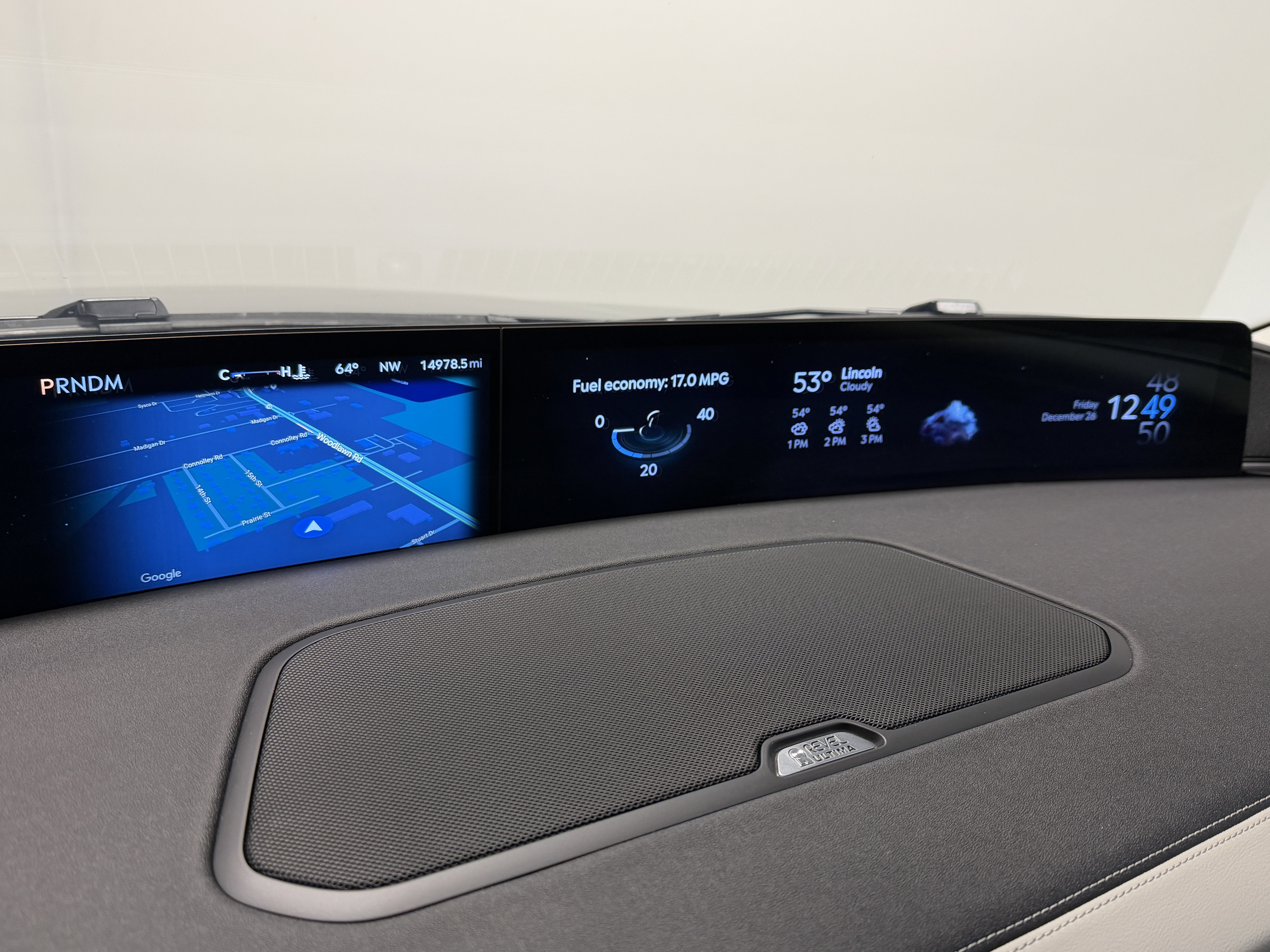 - Radio: Revel Ultima 3D AM/FM/HD Audio System -inc: 28 speakers including subwoofer featuring QuantumLogic 3D surround technology, speed-compensated volume, satellite, audio profile settings (memory), 11.1" LCD capacitive touchscreen in center stack w/swipe capability, customizable theme (constellation, engage, inspire and tranquil), 5G connectivity, Google Maps, welcome/farewell experience, wireless Apple CarPlay and Android Auto compatibility, digital owner's manual, Google App Store, games/news/podcasts apps and Over The Air updates